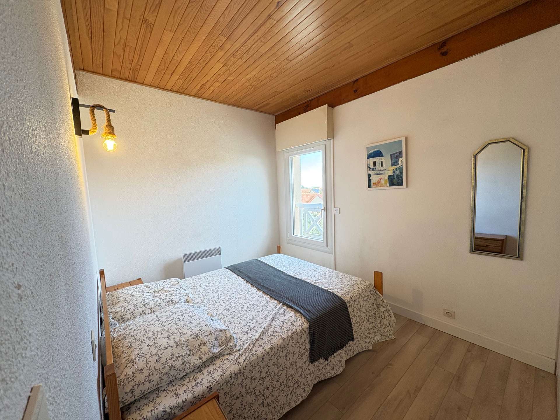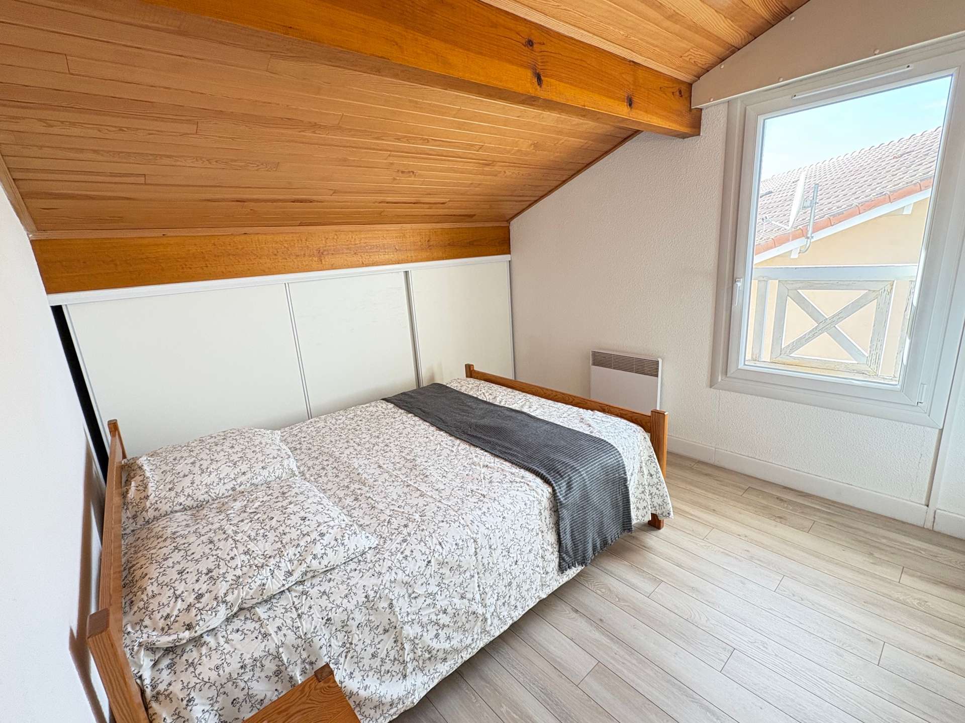 A l’étage, deux chambres une avec un lit 140 (literie neuve), une seconde avec 1 lits 140. Parking privatif.